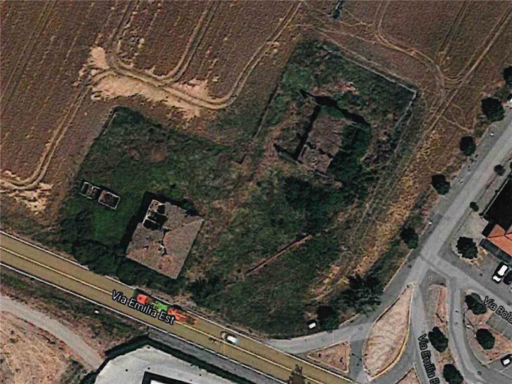 VD4418 Castelfranco Emilia località Cavazzona fronte Via Emilia e in angolo con altra strada, possibilità di acquisire compendio immobiliare composto da fabbricati ex-colonici con annesso terreno agricolo di circa 20.000 mq. I fabbricati sono parzialmente diroccati e completamente da rifare. Euro 170.000