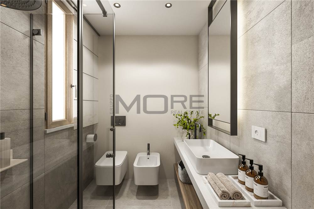 Gli appartamenti luminosi e confortevoli finiti con materiali di altissima qualità sono dotati di impianti domotici di riscaldamento e raffrescamento a pavimento, di ventilazione meccanizzata, di allacciamento all’impianto fotovoltaico, di connessione alla fibra ottica e di predisposizione per sistema antifurto.