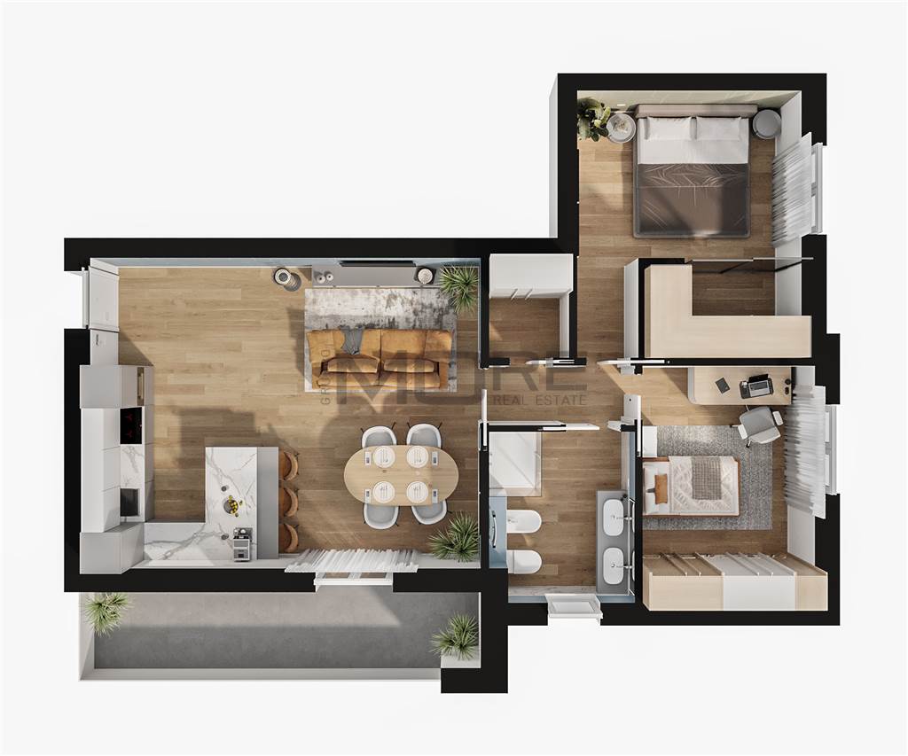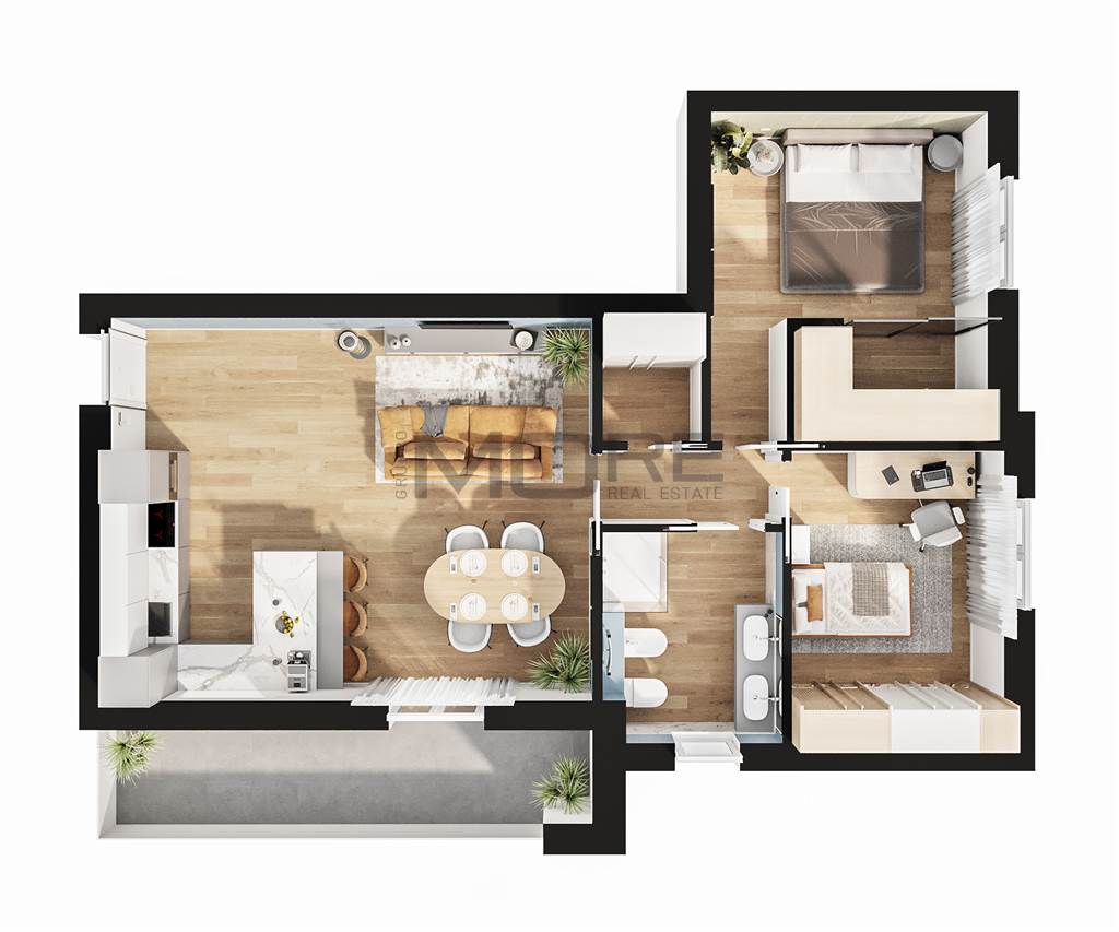 Il progetto prevede due palazzine affiancate ognuna composta da 6 unità immobiliari di varie metrature distribuite su due piani fuori terra ed un unico piano interrato collegato con ascensore, che ospita garages e posti auto.