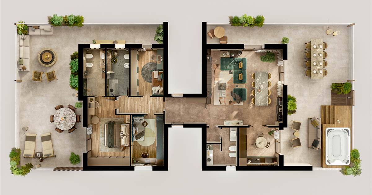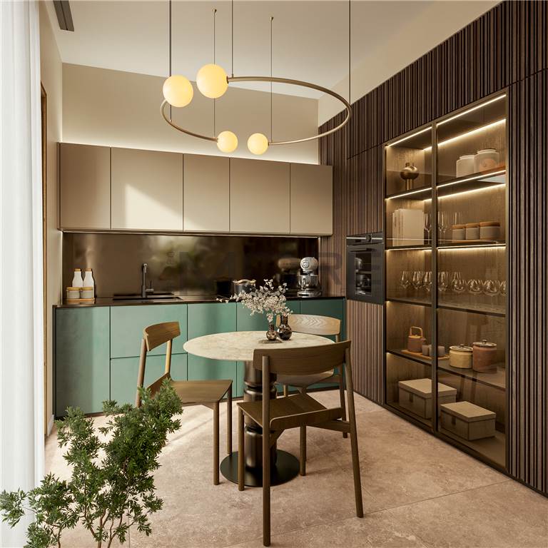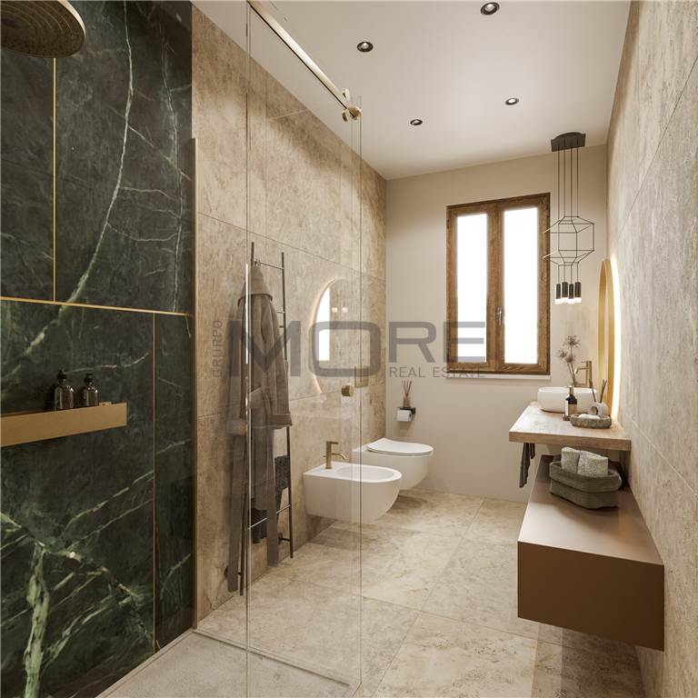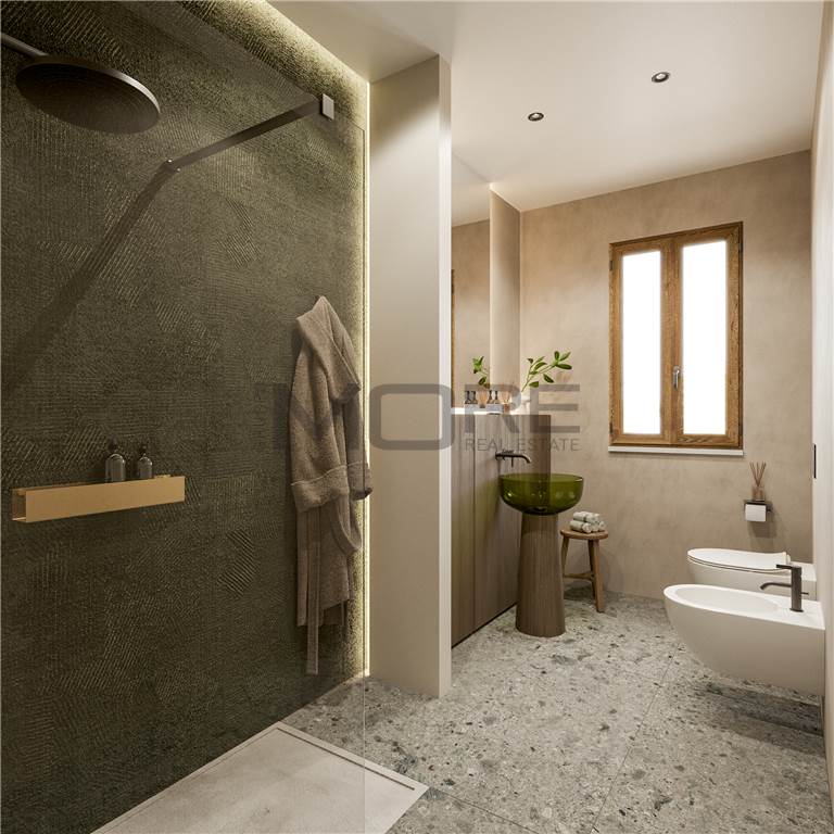 Gli appartamenti luminosi e confortevoli finiti con materiali di altissima qualità sono dotati di impianti domotici di riscaldamento e raffrescamento a pavimento, di ventilazione meccanizzata, di allacciamento all’impianto fotovoltaico, di connessione alla fibra ottica e di predisposizione per sistema antifurto.