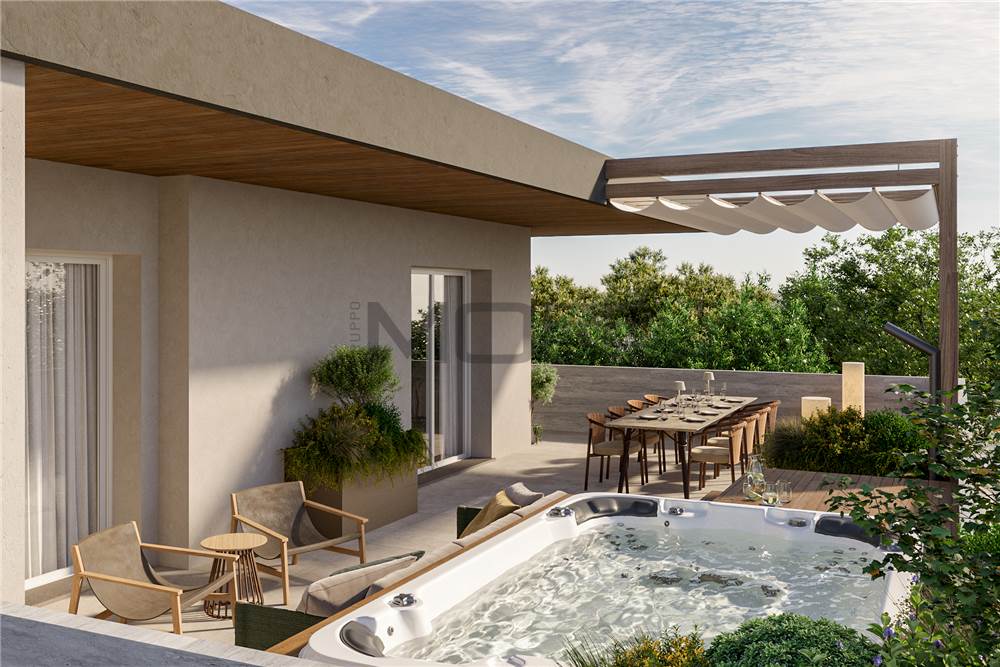 Prestigioso intervento immobiliare situato in zona verde a pochi passi dal Parco Rio dei Gamberi e a pochi minuti dal centro di Castelnuovo che consiste nella realizzazione di due edifici con 5 lussuosi appartamenti ciascuno.
