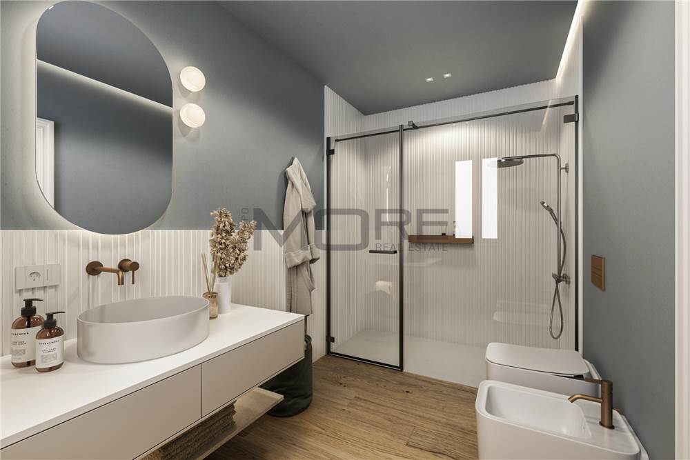 Gli appartamenti luminosi e confortevoli finiti con materiali di altissima qualità sono dotati di impianti domotici di riscaldamento e raffrescamento a pavimento, di ventilazione meccanizzata, di allacciamento all’impianto fotovoltaico, di connessione alla fibra ottica e di predisposizione per sistema antifurto.