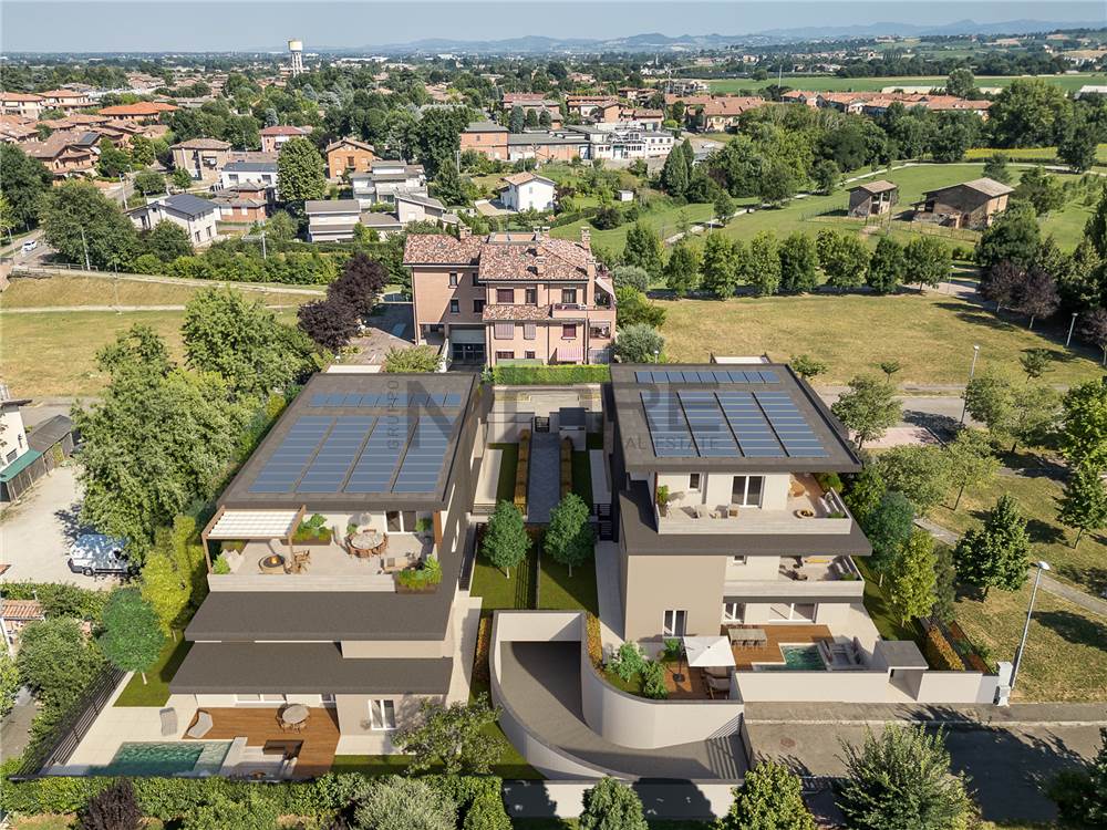 Intervento immobiliare situato in zona verde a pochi passi dal parco Rio dei Gamberi e a pochi minuti dal centro di Castelnuovo che consiste nella realizzazione di due edifici con 5 lussuosi appartamenti ciascuno.
