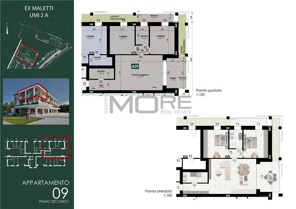 MO860D-UMI2A(A9). Nostra esclusiva, Casinalbo, Borgo San Luigi - Ex Salumificio Maletti, in angolo verde comodo a tutti i servizi prossima realizzazione di comparto residenziale (Classe Energetica A4 - NZEB) composto da nr. 9 palazzine e due ville indipendenti. All'interno della palazzina UMI2A, di dieci unità abitative, vendesi app.to "A9" di 132 mq. comm. ubicato al piano secondo e ultimo con ascensore.