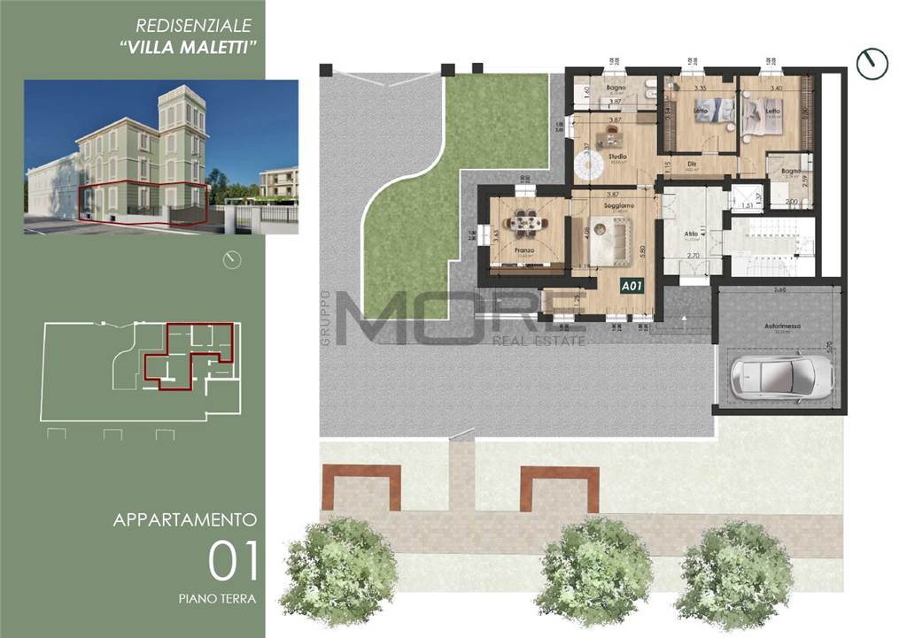 MO860D-VM1. Nostra esclusiva, Casinalbo, Borgo San Luigi - Ex Salumificio Maletti, in angolo verde comodo a tutti i servizi prossima realizzazione di comparto residenziale (Classe Energetica A4 - NZEB) composto da nr. 9 palazzine e due ville indipendenti. All'interno della storica Villa Maletti, (composta da sole tre unità abitative) in fase di integrale riqualificazione vendesi maisonette di 177 mq. comm.