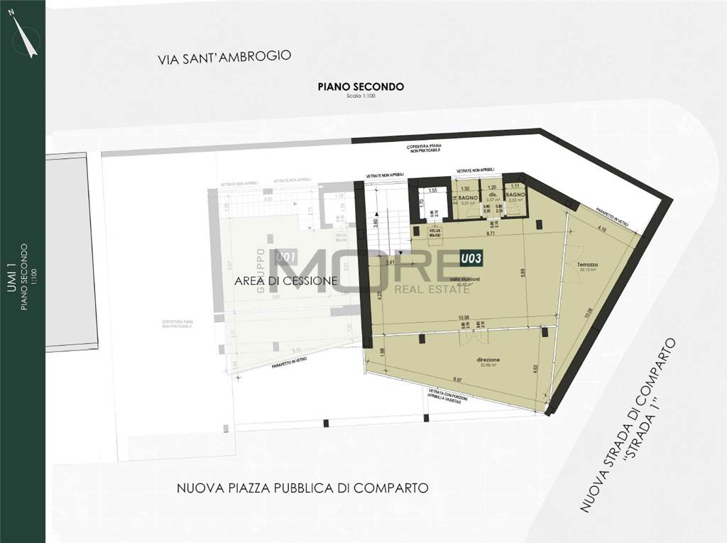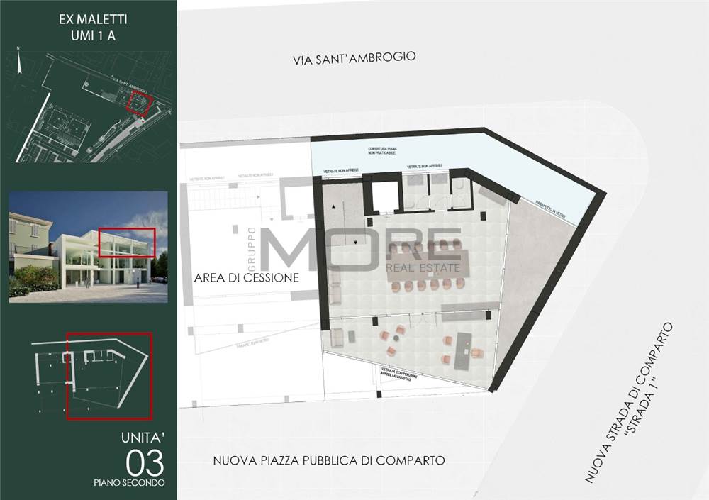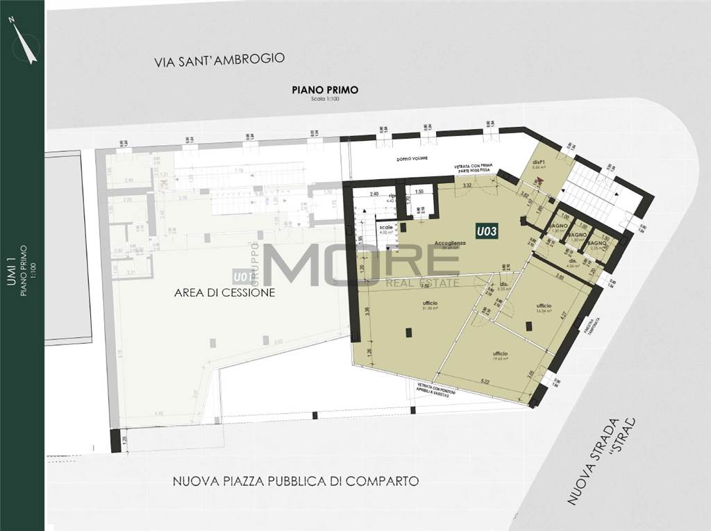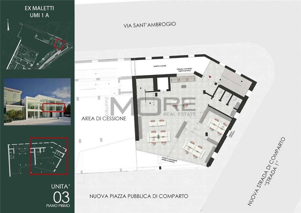 Al primo piano della palazzina UMI1A vendesi ufficio "U3" di 298 mq. su due livelli (piani 1° e 2°) dotato di ingresso indipendente e ampie vetrate.