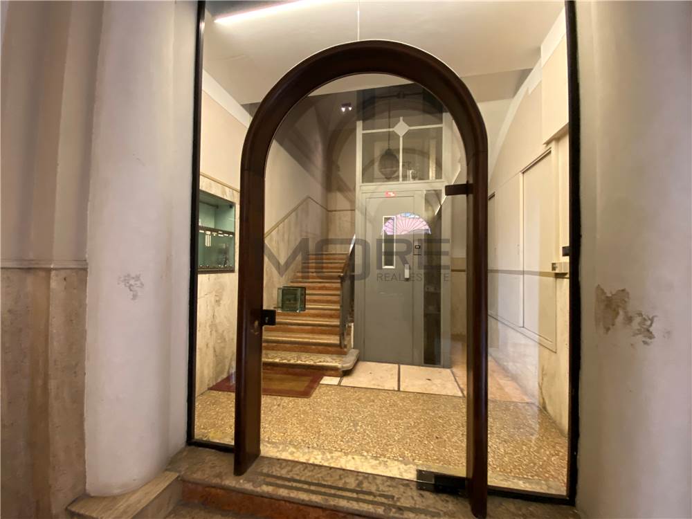 Le caratteristiche di pregio includono soffitti dall'altezza importante di 4,5 metri, pavimentazione in parquet e impianto di climatizzazione. Nel cortile interno è presente uno spazio dedicato al ricovero delle biciclette. La proprietà si completa con una soffitta di pertinenza. Per la conversione in abitazione si rendono necessari interventi di ristrutturazione.