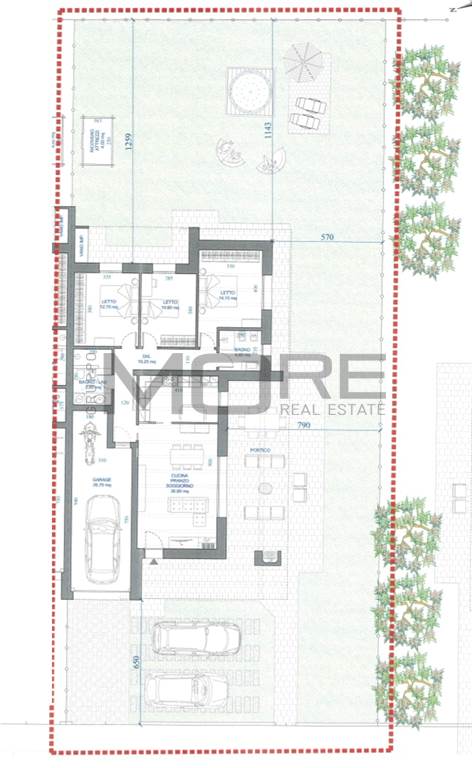 La villa, inserita all'interno di un ampio ed elegante complesso residenziale, gode di un ampio giardino privato e si trova su un unico piano.