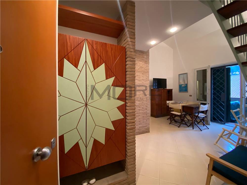 In un curato complesso residenziale composto da appartamenti e villette, proponiamo in affitto un elegante attico al primo ed ultimo piano, ideale come casa vacanza.
