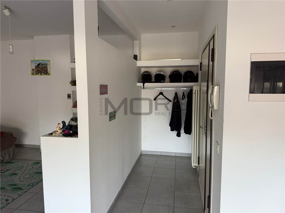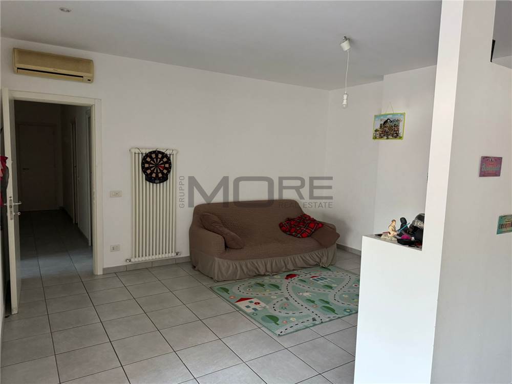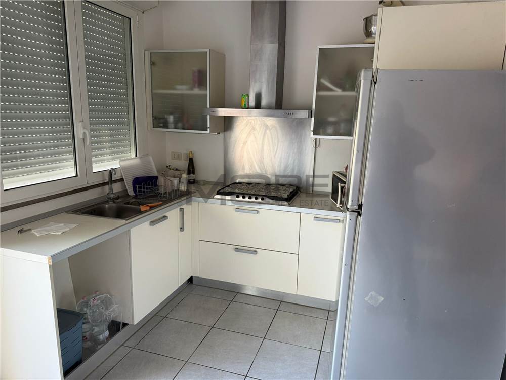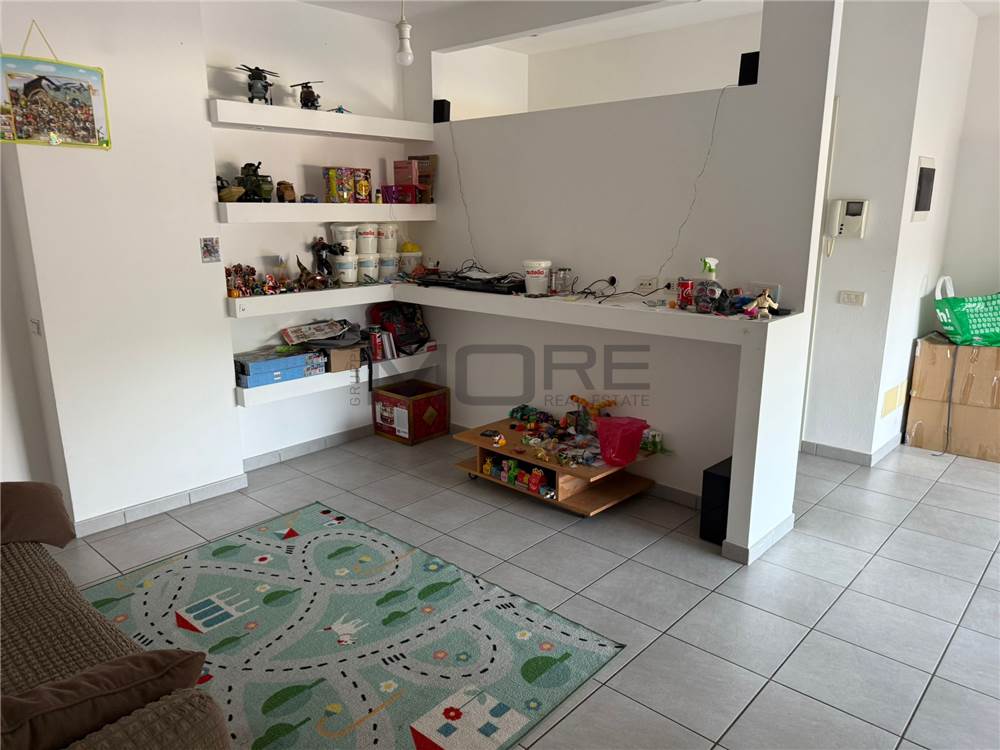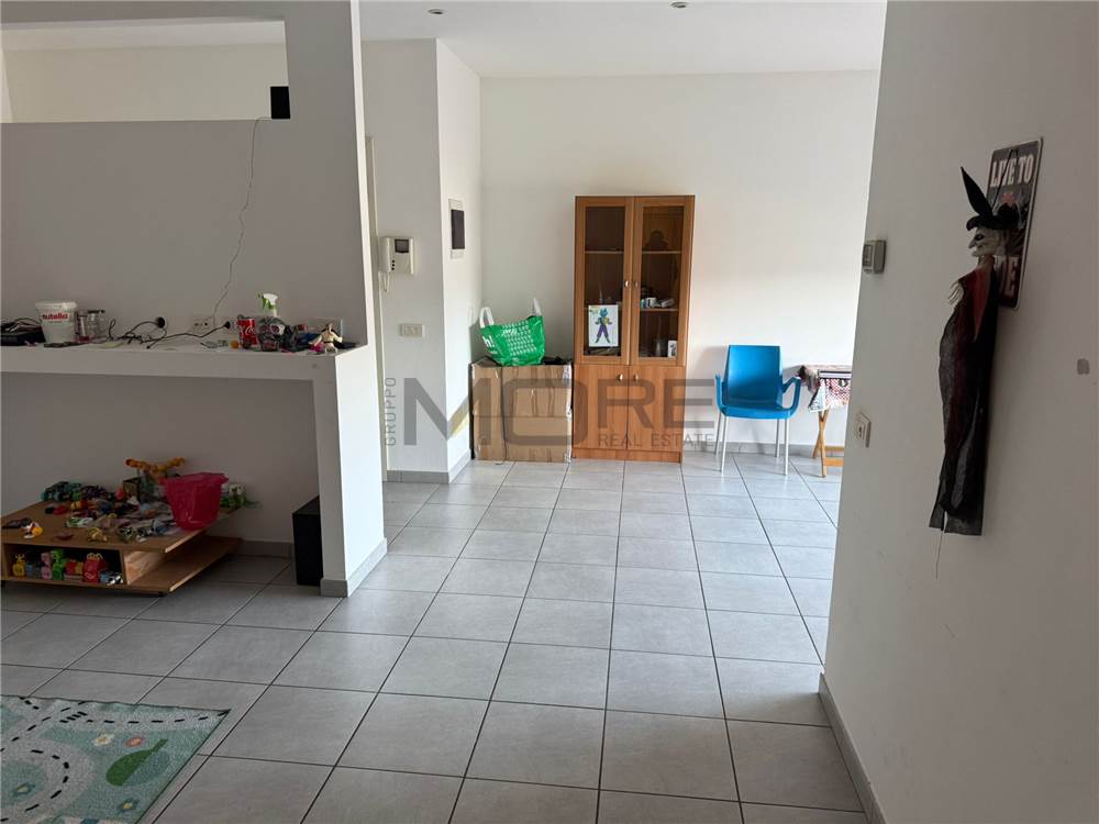 L’ingresso si apre su un luminoso soggiorno con cucina in nicchia e accesso diretto al grande terrazzo, dove è possibile realizzare una veranda chiusa. Gli ambienti risultano ariosi e facilmente arredabili.