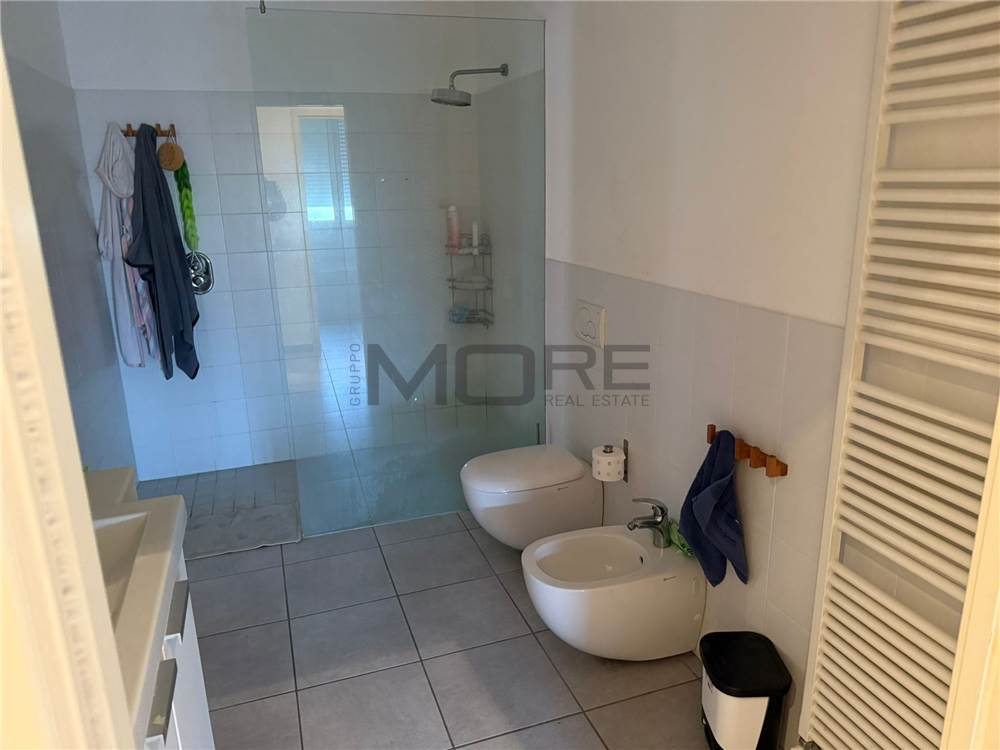 La zona notte comprende tre camere da letto, di cui due matrimoniali, oltre a due bagni di ampie dimensioni. A completare la proprietà sono presenti un comodo ripostiglio e un guardaroba. L’immobile è dotato di riscaldamento autonomo e aria condizionata.