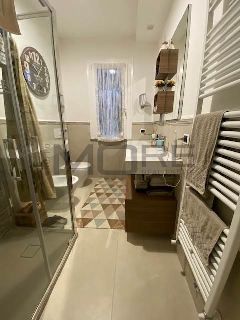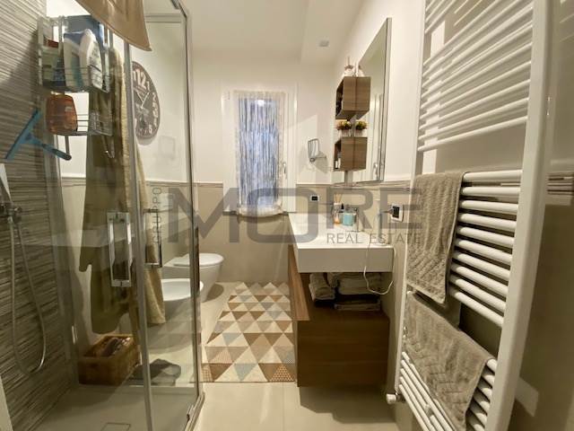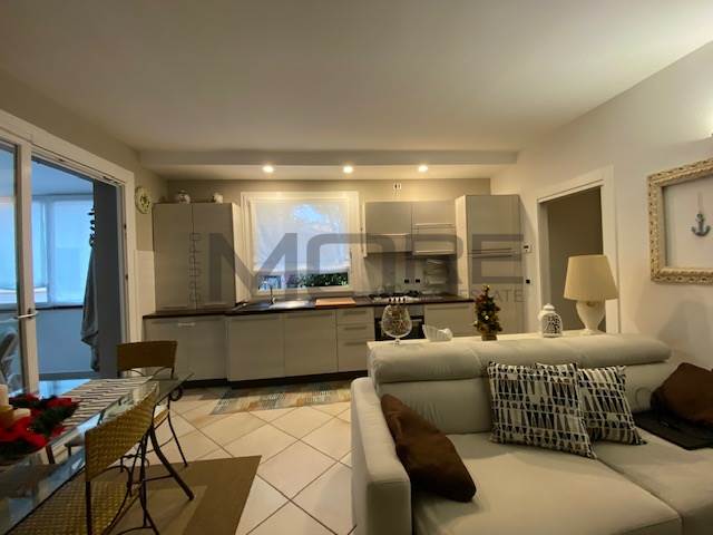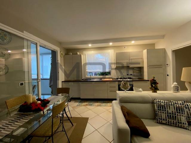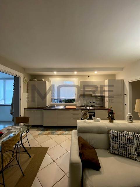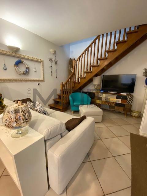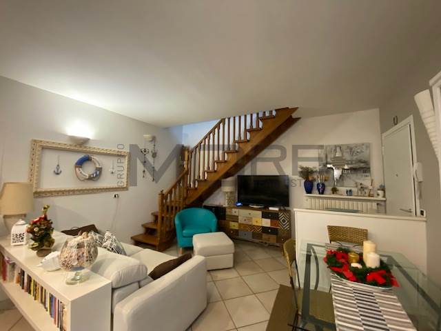 ingresso su ampio soggiorno con angolo cottura, terrazzo verandato di 10 mq, perfetto per pranzi e cene , armadio a muro nel disimpegno con all'interno zona asciugatrice, lavatrice, caldaia , elegante bagno finestrato, camera da letto matrimoniale con terrazzo di dieci metri, scala interna per accedere al piano secondo composto da due stanze con bagno.