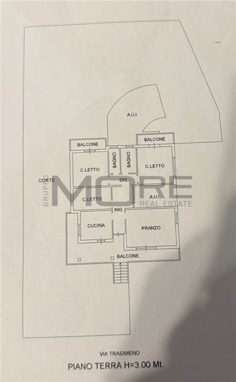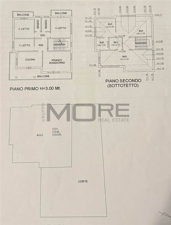 1° piano: appartamento composto da salone, cucina abitabile, 2 camere, doppi servizi, 3 balconi e box esterno.