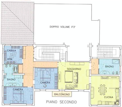 Al piano secondo un appartamento composto da soggiorno , cucina molto grande, 3 camere, 2 bagni