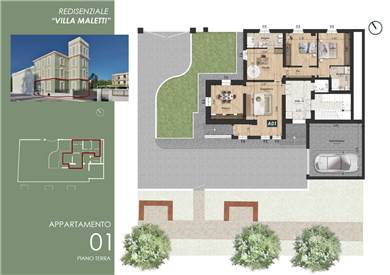 MO860D-VM1. Nostra esclusiva, Casinalbo, Borgo San Luigi - Ex Salumificio Maletti, in angolo verde comodo a tutti i servizi prossima realizzazione di comparto residenziale (Classe Energetica A4 - NZEB) composto da nr. 9 palazzine e due ville indipendenti. All'interno della storica Villa Maletti, (composta da sole tre unità abitative) in fase di integrale riqualificazione vendesi maisonette di 177 mq. comm.