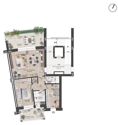 MO867B_B5 Nostra esclusiva, Via del Mercato, all'interno del nuovo comparto Ex Mercato Bestiame, nuova realizzazione di palazzina (Classe Energetica A4-NZEB) vendesi attico "B5" al piano terzo ed ultimo con ascensore, di 99 mq., due logge coperte e giardino pensile.
