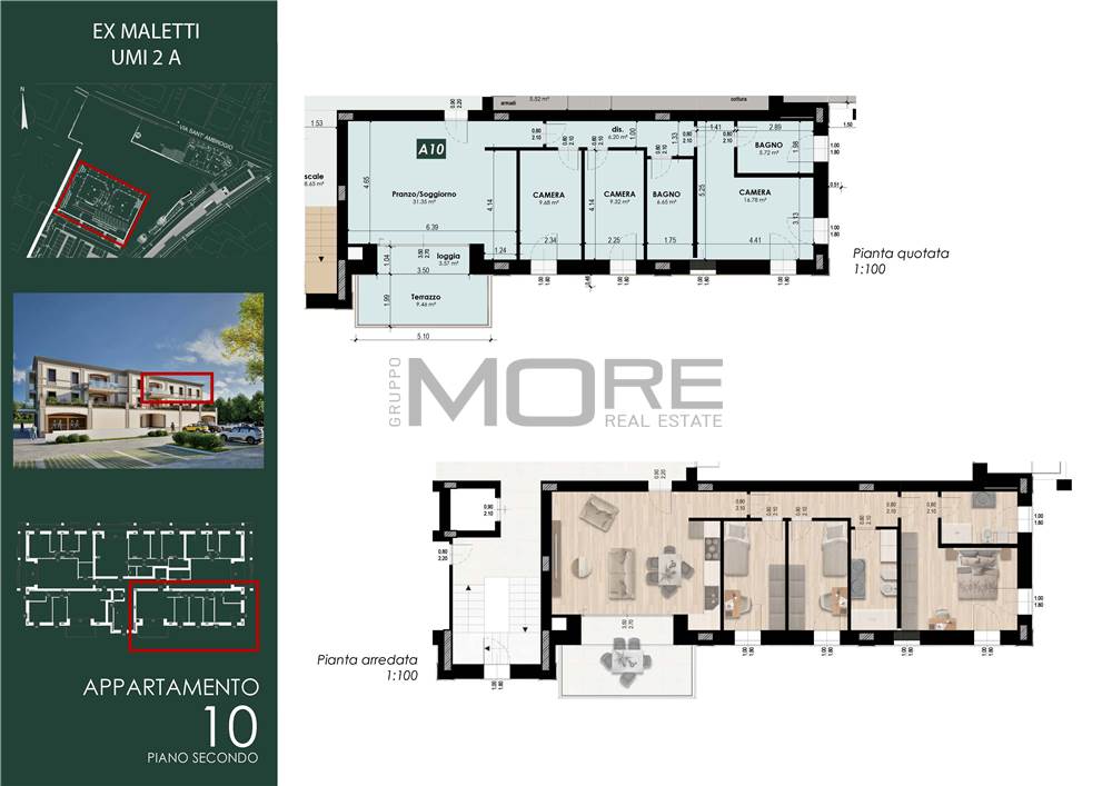 MO860D-UMI2A(A10). Nostra esclusiva, Casinalbo, Borgo San Luigi - Ex Salumificio Maletti, in angolo verde comodo a tutti i servizi prossima realizzazione di comparto residenziale (Classe Energetica A4 - NZEB) composto da nr. 9 palazzine e due ville indipendenti. All'interno della palazzina UMI2A, di dieci unità abitative, vendesi app.to "10" di 138 mq. comm. ubicato al piano secondo e ultimo con ascensore.